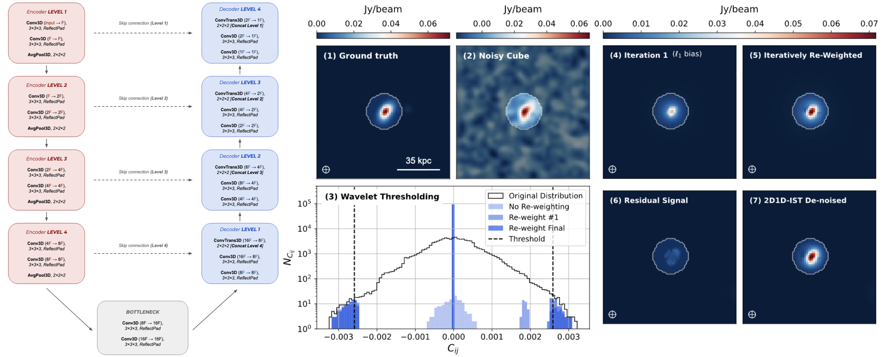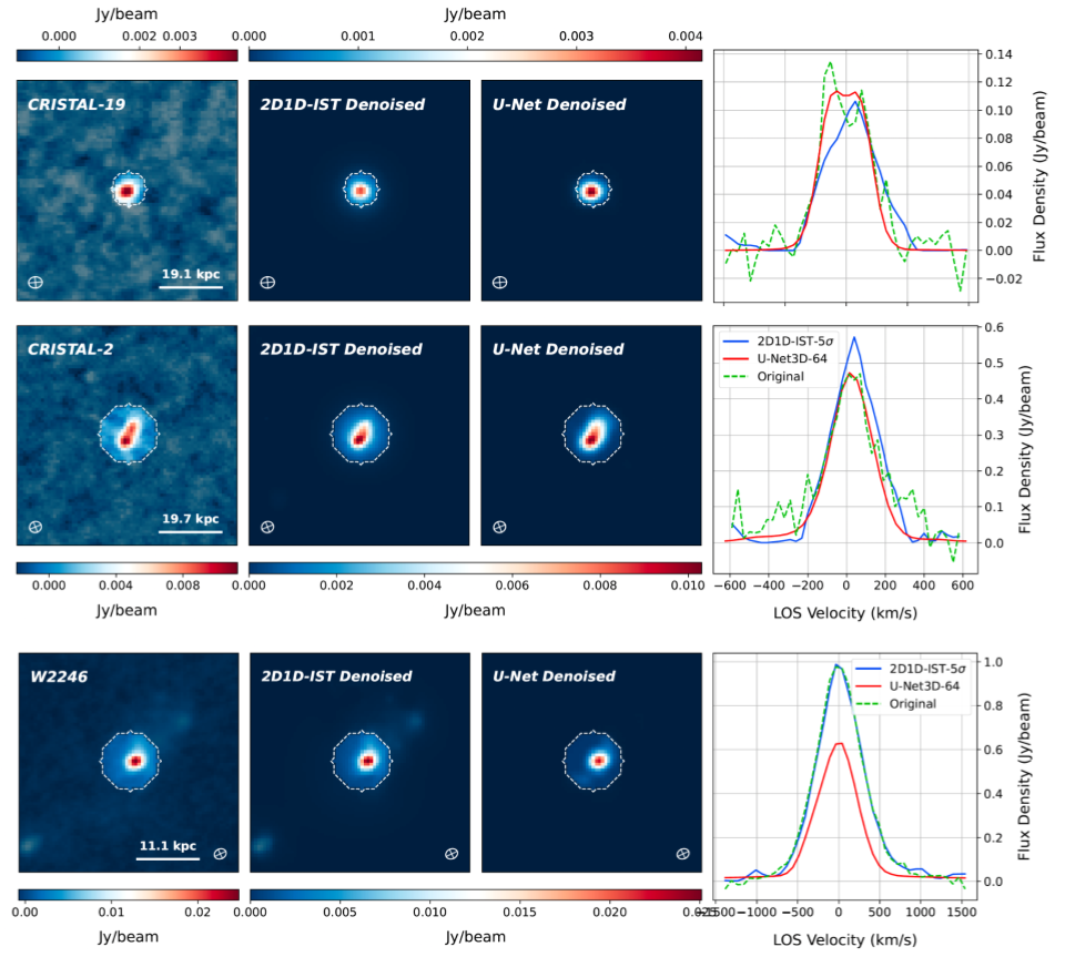 - Synthetic IFU Dataset: The input cubes are produced by applying radiative transfer and non-equilibrium chemistry to cosmological galaxy simulations. They span a broad range of redshifts, morphologies, inclinations, spatial resolutions, and dynamical states, ensuring a diverse and physically motivated training set.
